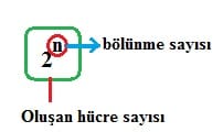 *** Mitoz bölünme sonucu oluşan hücre sayısını bulmak için 2 üzeri n formülü kullanılır.