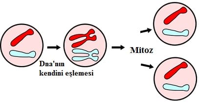 – Ana hücrenin aynısı iki yavru hücre oluşur. Bu iki hücre kalıtsal olarak tamamen aynı yapıdır.