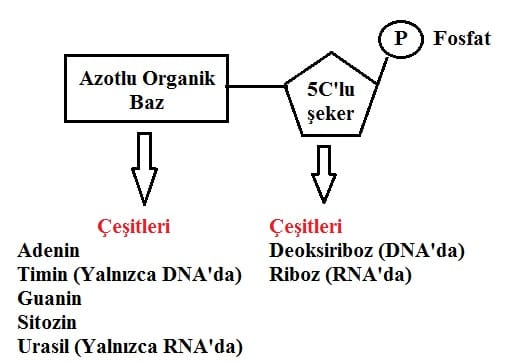 Nükleik asitler yapılarındaki 5 Carbon’lu şekere göre iki çeşittir. Bunlar: